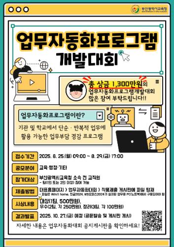 [뉴스스텝] 부산광역시교육청은 전 교직원을 대상으로 ‘업무자동화 프로그램 개발 대회’를 개최한다고 밝혔다.