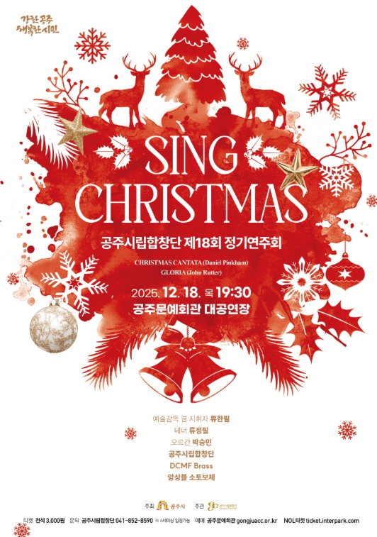 이번 공연은 한 해의 끝에서 시민들이 음악으로 따뜻한 위로와 희망의 메시지를 느낄 수 있도록 마련된 크리스마스 특별 무대로, 공주시립합창단을 중심으로 테너 류정필, 오르간 박승민, DCMF Brass, 앙상블 소토보체 등 수준 높은 연주자들이 함께해 더욱 풍성한 무대를 선사할 예정이다.