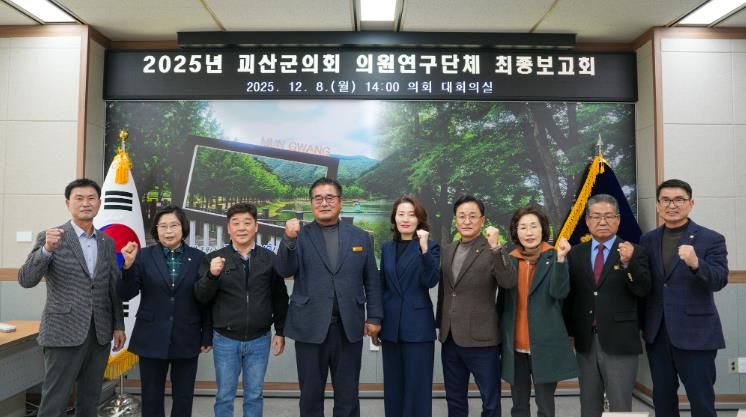 [뉴스스텝] 괴산군의회는 12월 8일 의회 대회의실에서 2025년 의원연구단체의 최종보고회를 개최하고, 한 해 동안 수행한 연구 활동을 공식적으로 마무리했다.