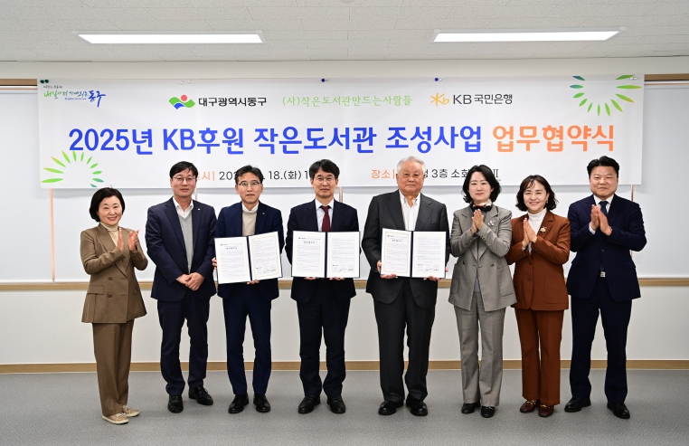 [뉴스스텝] 대구 동구청은 지난 18일, KB은행, (사)작은도서관만드는사람들과 ‘작은도서관 조성사업’을 위한 업무협약을 체결했다.