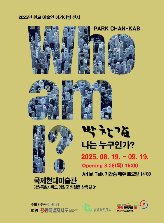 아카이빙 전시 일정은 8월 19일부터 9월 19일까지 국제현대미술관 (영월읍 삼옥길 31)에서 전시되며, 전시 기간 매주 토요일 오후 2시에는 ‘작가와의 만남’이 진행될 예정이다.