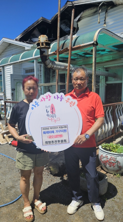 이번 지원은 종천면 종천1리에 거주하는 민모 씨의 가구에서 발생한 주택 화재에 따른 조치로, 피해 가구는 현재 지인의 집에서 임시로 거주 중이다.
