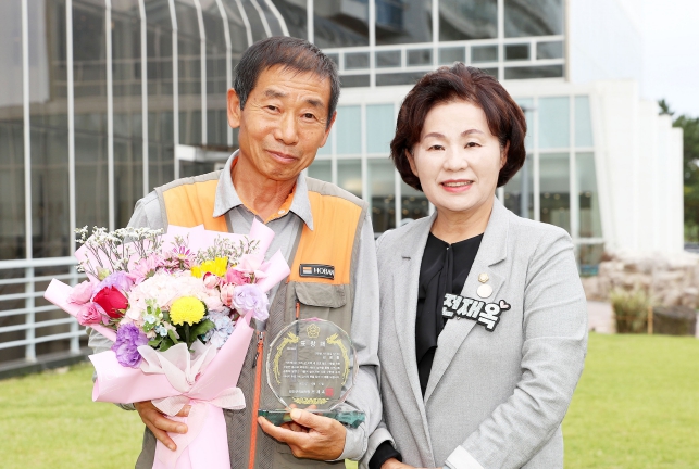 ▲ 보호아동을 위한 선행을 꾸준히 실천해 온 수상자 김광홍 씨와 태안군의회 전재옥 의장 |