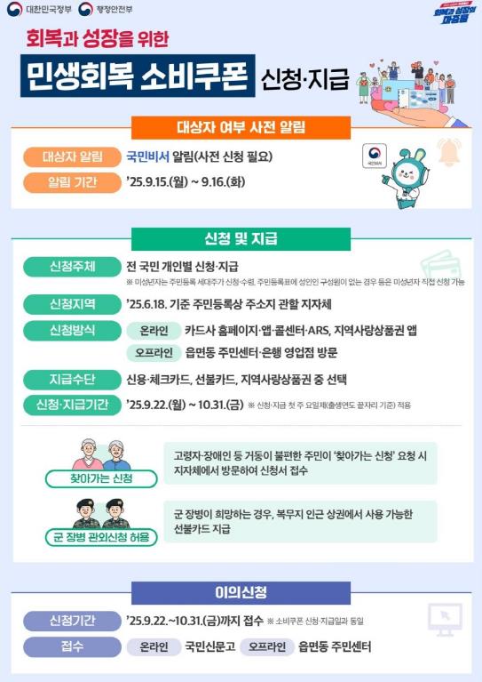 태백시 관계자는 “민생회복 소비쿠폰은 지역 내 소비를 촉진하고 서민경제에 힘을 보태는 중요한 사업”이라며, “시민 여러분께서 기한 내 꼭 신청해 혜택을 누리실 수 있도록 적극 홍보하겠다”고 말했다.