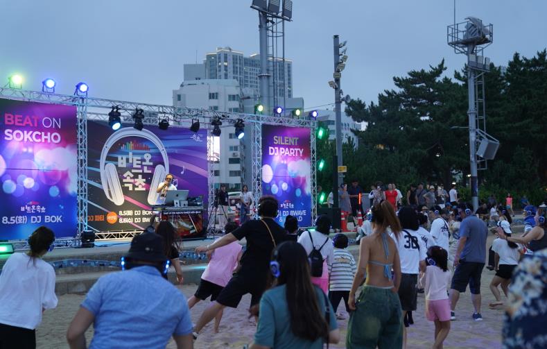 ‘비트온(BEAT ON) 속초’는 올해 8월 4일부터 6일까지 3일간 진행됐으며, 파워 유튜버 ‘춤추는 곰돌’과 함께한 K-POP 랜덤댄스, 속초시 야간관광 대표 브랜드 ‘빛의 바다 속초’ 미디어아트, 무선 헤드폰을 활용한 무소음 DJ파티 등으로 구성됐다.