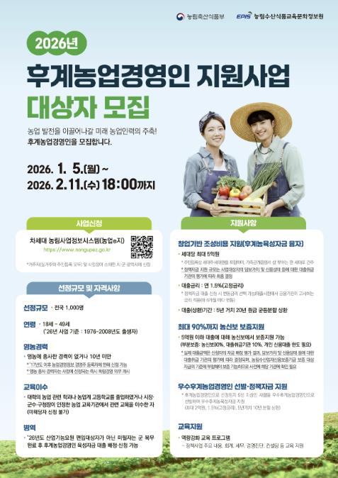 | ▲ ‘2026년 후계농업경영인 육성사업’ 홍보문. |