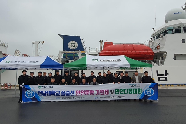 [뉴스스텝] 전남대학교 수산해양대학(학장 서호영)은 지난 24일 여수 신북항에서 선박실습센터 및 실습선 교직원들이 참석한 가운데, 실습선의 안전 운항과 승선자의 무사 안녕을 다짐하는 ‘전남대학교 실습선 안전기원제 및 안전 다짐 대회’를 개최했다.