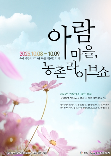 오는 10월 2일 개회식을 시작으로 10월 8일과 9일 본행사가 열리는 ‘2025년 아람마을 쿨한 축제 – 농촌 라이브쇼’는 지역 어르신과 청년이 함께 만들어가는 세대 융합형 축제로, 농촌의 일상을 힙하고 재미있게 재해석한 새로운 형태의 마을 축제다.