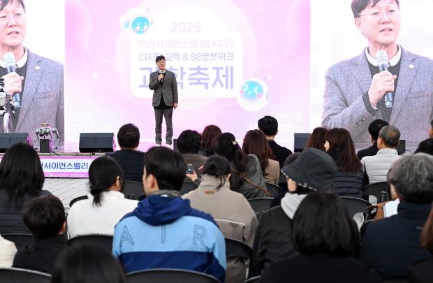 | ▲ 이민근 안산시장이 지난 2일 한양대 ERICA 캠퍼스에서 열린 ‘2025 안산사이언스밸리(ASV) 과학축제’ 기념식에서 인사 발언을 하고 있다. |