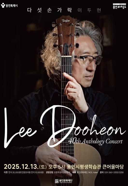 [뉴스스텝] (재)용인문화재단은 오는 12월 13일 오후 5시, 용인시평생학습관 큰어울마당에서 ‘다섯손가락 이두헌 40th Anthology Concert’를 개최한다.