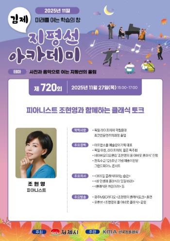 [뉴스스텝] 다양한 분야의 명사를 초청해 시민의 문화적 소양의 높이고 삶의 품격을 더하는 교양 강좌인 김제지평선아카데미가 오는 27일 제720회 강좌에 조현영 아트앤소울 예술강의기획 대표를 초청해 “피아니스트 조현영과 함께하는 클래식 토크”라는 주제로 강연을 진행한다.