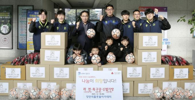 [뉴스스텝] 수원시 장안구는 장안리틀풋볼아카데미가 지난 30일 장안구청에 라면 25상자와 축구공 20개 기부했다고 밝혔다. 이번 기부는 아카데미 회원들이 십시일반으로 정성을 모아 마련한 것으로, 장안구 관내 어려운 이웃들에게 전달될 예정이다.