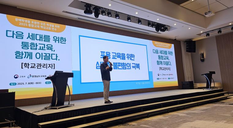 [뉴스스텝] 충남교육청은 장애학생의 배움과 삶을 품는 포용적 학교문화 조성을 위해 ‘2025 장애학생 통합교육 핵심교원 양성 연수’를 8일부터 10일까지 전주 라한호텔에서 운영한다고 밝혔다.