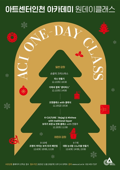 이관형 아트센터인천관장은 “아트센터인천은 시민들이 일상 속에서 예술과 문화를 즐길 수 있는 기회를 꾸준히 만들어가고 있다. 이번 클래스가 연말의 소중한 추억으로 남길 바란다”고 말했다.