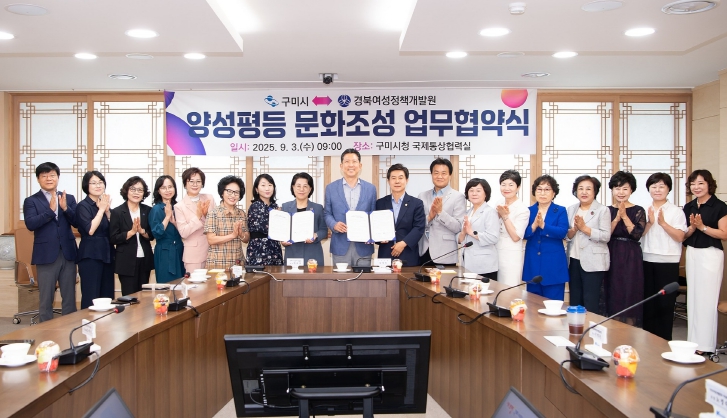 김장호 구미시장은 “이번 협약은 지역사회 양성평등 문화 확산과 여성 사회역량 강화를 위한 중요한 발판이 됐다”며 “앞으로도 구미시가 저출생 극복과 성평등 정책의 선도 도시로 자리매김하도록 최선을 다하겠다”고 했다.