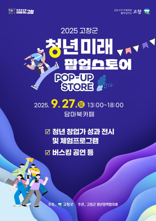 [뉴스스텝] 고창군은 오는 9월27일 오후 1시부터 담마북카페에서 2025 청년의 날 기념행사 ‘청년미래 팝업스토어’를 연다.