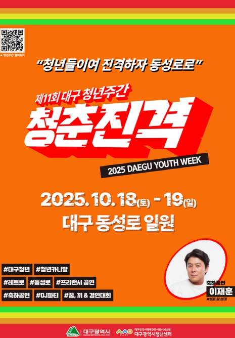 [뉴스스텝] 대구광역시는 10월 18일부터 19일까지 이틀간, 동성로 일대(CGV대구한일~동성로28아트스퀘어~구 중앙파출소)에서 ‘2025 대구청년주간’을 개최한다.