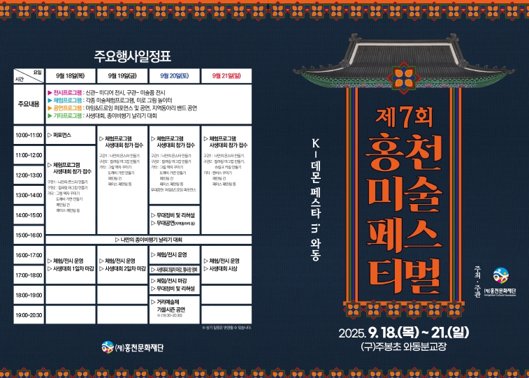 [뉴스스텝] 홍천군과 홍천문화재단은 오는 9월 18일부터 21일까지 홍천미술관 와동분관에서(구 와동분교) 케이 데몬을 재해석한 문화예술 행사 및 제7회 홍천미술페스티벌을 개최한다.