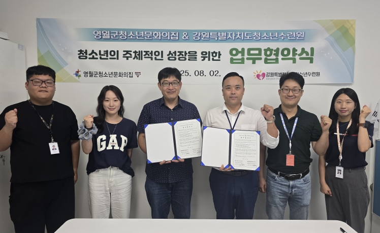[뉴스스텝] 영월군청소년문화의집은 2일 문화의 집 2층 회의실에서 강원특별자치도 청소년수련원과 지역 청소년의 능동적이고 주체적인 성장을 지원하기 위해 업무협약을 체결했다.