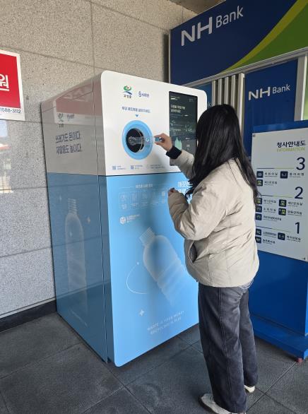 무인회수기는 무색·투명 페트병만 투입 가능하며, 내용물을 비우고 라벨을 제거한 뒤 한 개씩 투입해야 한다.