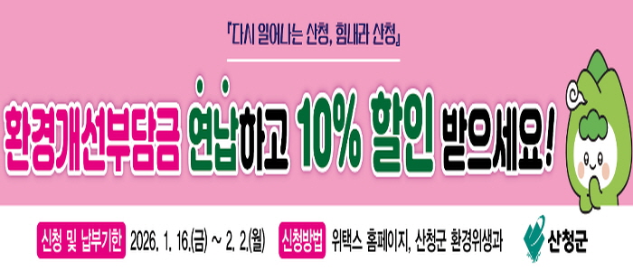 신청 및 납부는 오는 2월 2일까지 인터넷 위택스나 산청군 환경위생과로 전화 및 방문해 납부할 수 있다.