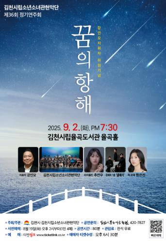 [뉴스스텝] 김천시는 9월 2일 화요일 오후 7시 30분에 율곡도서관 율곡홀에서 시립소년소녀관현악단 제36회 정기연주회를 개최한다.