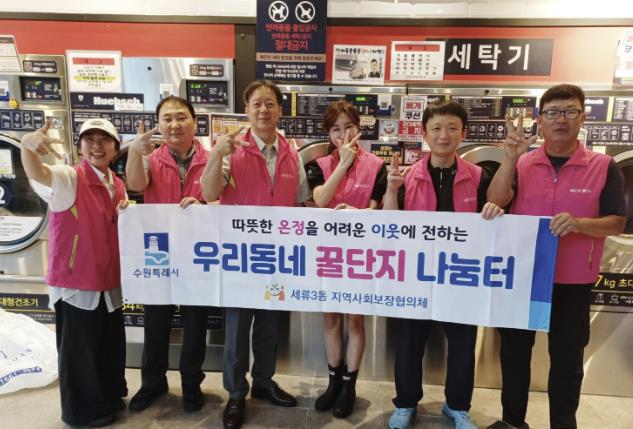 [뉴스스텝] 수원시 권선구 세류3동 지역사회보장협의체는 지난 13일, 이불세탁서비스 2가구를 지원했다. 이불세탁서비스는 관내 무인빨래방 사업장의 후원으로, 이루어지고 있다.