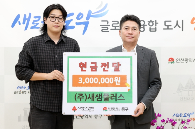 [뉴스스텝] 인천시 중구는 관내 소재 기업체 ㈜새샘플러스(대표 홍태현)가 어려운 이웃을 돕기 위한 이웃사랑 성금 300만 원을 기탁했다고 1일 밝혔다.