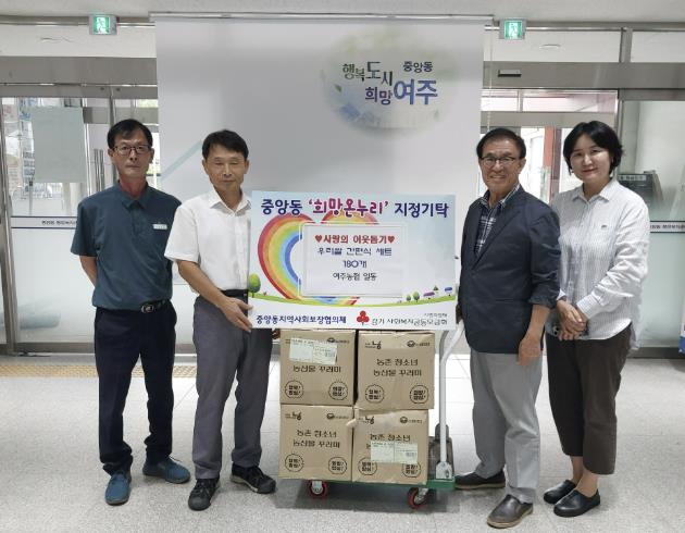 [뉴스스텝] 지난 11일 중앙동행정복지센터는 여주농협으로부터 쌀로 만든 가공식품 180개를 기탁받았다.