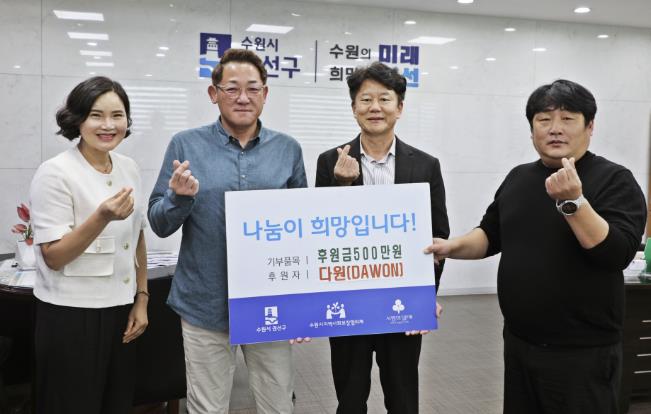 김종석 권선구청장은 “다원의 후원금 기탁에 감사드린다. 구민들의 가정이 더 행복할 수 있도록 권선구도 함께 노력하겠다”라고 말했다.