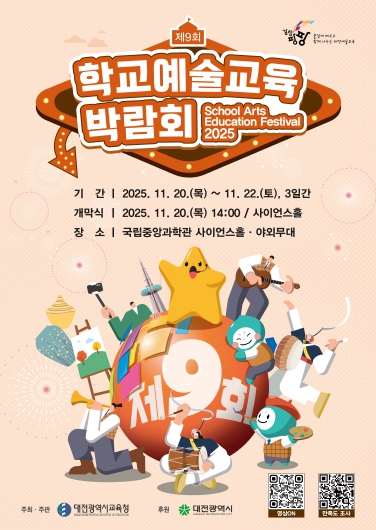 [뉴스스텝] 대전시교육청은 11월 20일부터 22일까지 '2025 제9회 학교예술교육박람회'를 국립중앙과학관에서 개최한다고 밝혔다.
