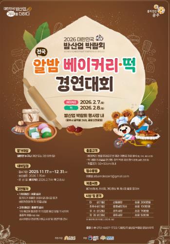 [뉴스스텝] 공주시는 2026년 2월 4일부터 8일까지 열리는 ‘2026 대한민국 밤산업 박람회-전국 알밤 베이커리·떡 경연대회’의 참가자를 모집한다고 밝혔다.