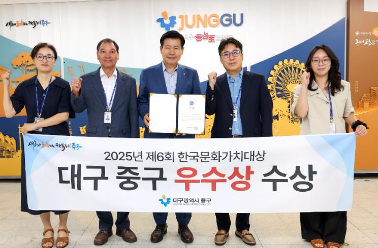 [뉴스스텝] 대구 중구는 (사)한국문화가치연구협회가 주관한 ‘2025년 제6회 한국문화가치대상’에서 우수상을 받았다고 밝혔다.