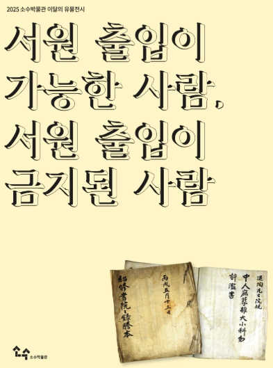 [뉴스스텝] 영주시 소수박물관은 12월 1일부터 2026년 2월 22일까지 이달의 유물전시 ‘서원 출입이 가능한 사람, 서원 출입이 금지된 사람’을 개최한다.