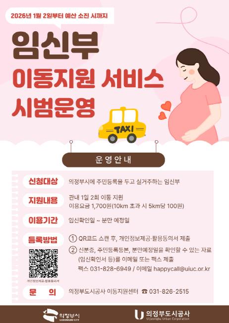[뉴스스텝] 의정부시가 임신부의 이동 불편을 해소하고 안전한 외출을 지원하기 위해 2026년 1월 2일부터 ‘임신부 이동지원 서비스’를 시범운영한다.
