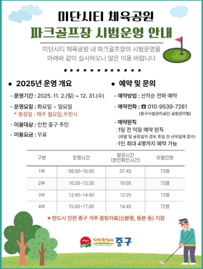▲ 홍보물-인천중구 미단시티 체육공원 파크골프장 시범운영 안내문 |