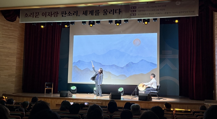 [뉴스스텝] 세종특별자치시교육청은 12월 23일에 2층 대강당에서 학생과 학부모, 교직원 등 세종 교육공동체를 대상으로 ‘2025년 우리동네 예술학교 예술명사 초청프로그램 소리꾼 이자람: 판소리, 세계를 울리다’를 성황리에 마쳤다.