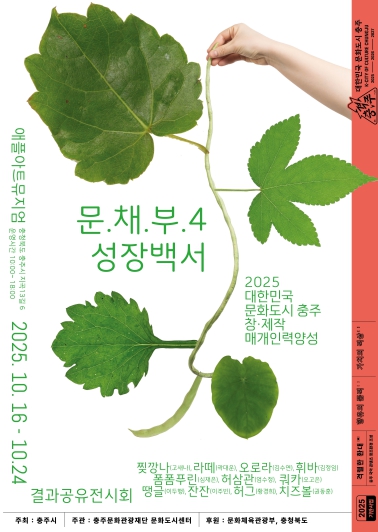 [뉴스스텝] 충주시와 (재)충주문화관광재단 문화도시센터는 2025 대한민국 문화도시 충주 사업의 일환으로 진행한 ·제작 매개인력 양성 '문화를 채우는 부족 4 : 성장백서'의 결과 공유 전시회를 충주시 애플아트뮤지엄(충주시 지현동 852)에서 10월 16일 15시 오픈식을 시작으로 24일까지 9일간 개최한다.