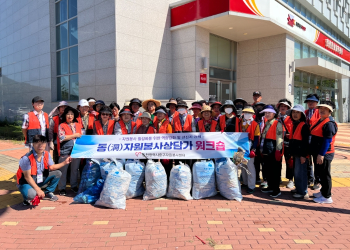 이번 워크숍에는 관내 행정복지센터 내 동 자원봉사센터에서 활동하고 있는 자원봉사자 40여 명이 참여했다.