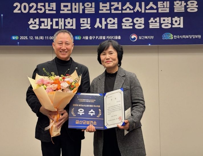 이를 통해 지난 18일 서울시 중구 일원에서 열린 2025년 모바일 보건소시스템 활용 성과대회에서 금산군이 우수상을 받았다.