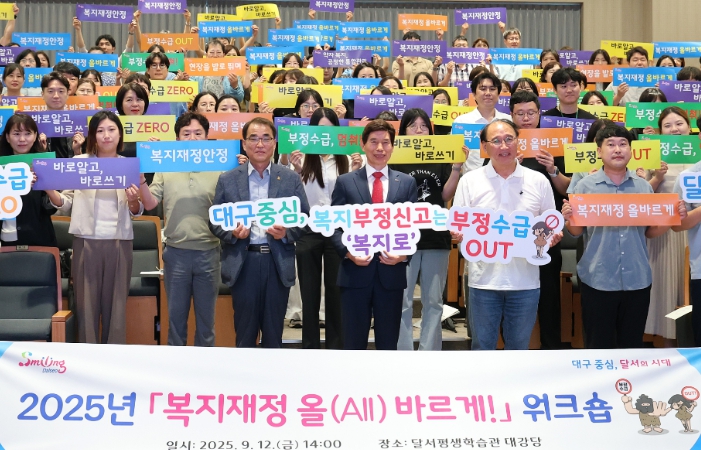 [뉴스스텝] 대구 달서구는 지난 12일 달서평생학습관에서 사회복지시설 종사자 및 사회복지직 공무원 150여 명을 대상으로 2025년 ‘복지재정 올(All)바르게!’ 워크숍을 개최했다.