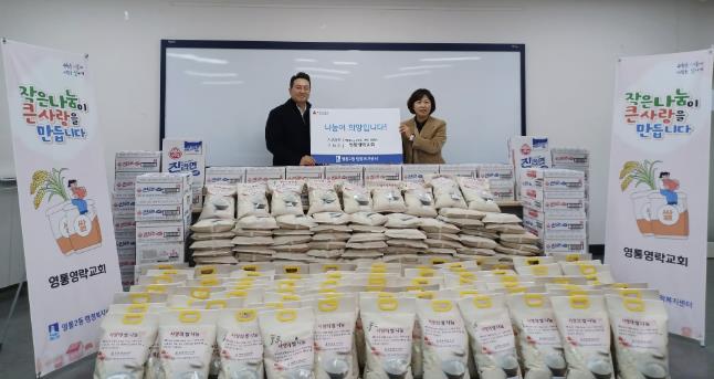 ▲ 영통영락교회 추수감사절 맞이 수원시 영통구 영통2동에 쌀 4kg 200포 후원
