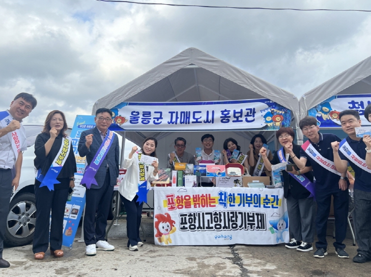 이날 재포울릉향우회 회원들도 참여해 고향 울릉군의 대표 축제를 응원하고 포항 홍보에 힘을 보태며 두 지역 간 끈끈한 유대와 우정을 재확인하는 계기가 됐다.