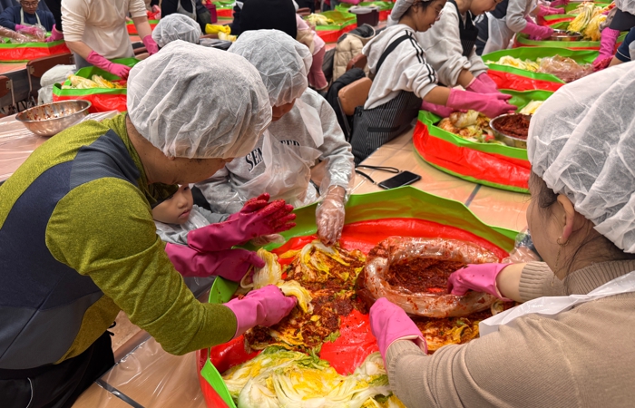 참가자들은 절인 배추에 양념을 버무리며 우리 전통 김장 문화를 체험했다.