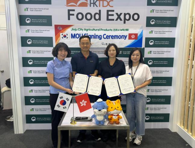 [뉴스스텝] 진주시는 지난 8월 14일부터 16일까지 3일간 홍콩 완차이 컨벤션센터에서 열린 2025 홍콩 국제식품박람회(HKTDC Food Expo)에 참가해 진주시 대표 농특산물의 우수성을 널리 알리고, 바이어 미팅을 통해 500만 달러 규모의 수출 상담과 80만 달러 규모의 MOU를 체결했다고 밝혔다.
