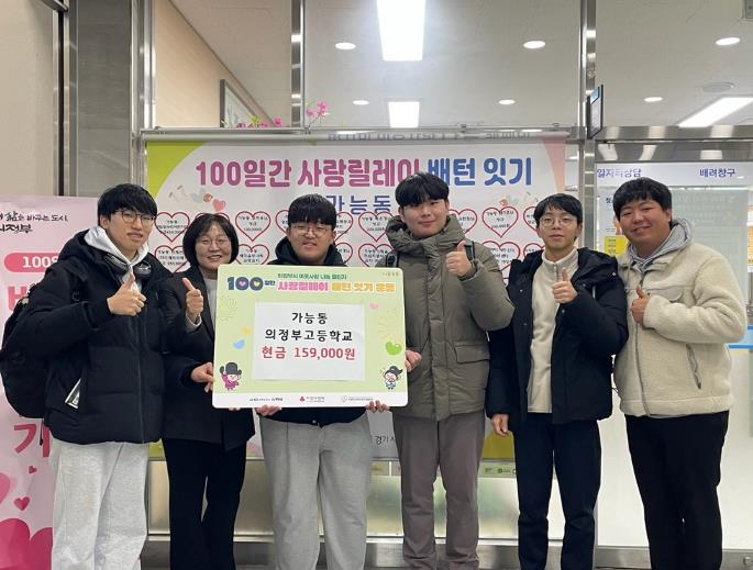 [뉴스스텝] 의정부시 가능동주민센터는 1월 7일 의정부고등학교 3학년 3반 졸업 예정 학생들이 교내 축제 활동을 통해 마련한 성금 15만9천 원을 관내 취약계층 지원을 위해 기부했다고 밝혔다.