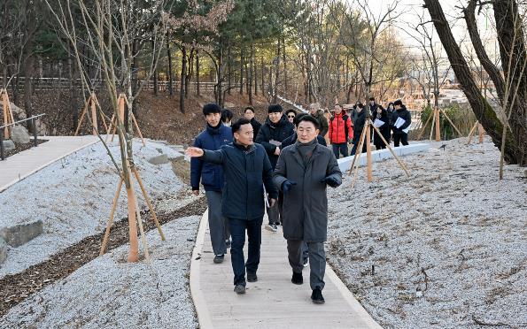[뉴스스텝] 의정부시는 2026년 병오년 새해를 맞아 1월 8일 녹지 인프라 확충을 위한 주요 사업 대상지를 현장 점검했다. 점검 대상지는 ▲장암동 실외정원 ▲용현산업단지 완충녹지 산책로 및 가로숲길 조성 사업지 ▲민락동 감성쉼터 등이다. 이번 점검은 도심 속 쉼터와 실외정원 확충, 안전한 보행환경 조성, 산림 명소 발굴 등 녹지 인프라 조성 사업의 추진 현황을 점검하고, 시민들이 일상에서 녹지 공간을 보다 쉽게 이용할 수 있도록 추진 중인 ‘도시숲 프로젝트’의 사업 방향과 현장 여건을 확인하기 위해 진행됐다.