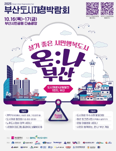 올해로 9회째를 맞는 이번 박람회는 ‘살기 좋은 시민행복도시 온:나 부산’을 주제로, 도시재생 홍보부스 운영, 우수 사례 경진대회, 시민 참여형 체험 프로그램 등 다채로운 행사가 진행된다.
