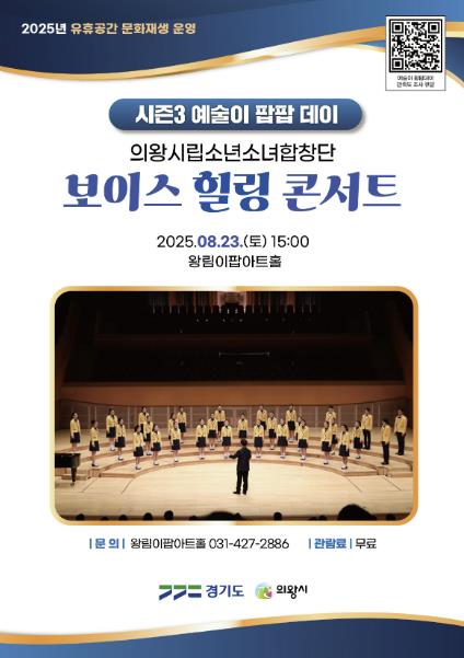 [뉴스스텝] 의왕시는 이번 달 23일 오후 3시, 왕림이팝아트홀(왕곡로 74) 공연장에서 『보이스 힐링 콘서트』를 개최한다.