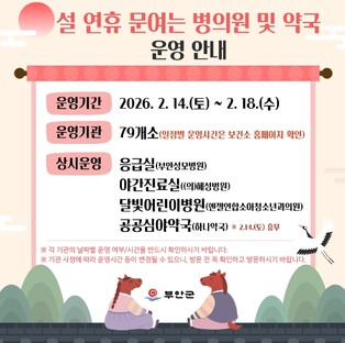 [뉴스스텝] 대구 수성구는 설 연휴 기간 ‘수성구형 휴일어린이집’을 설 당일을 제외하고 정상 운영하고, ‘아이돌봄서비스’는 평일 요금을 적용해 운영한다고 밝혔다.‘수성구형 휴일어린이집’은 보호자의 근로 활동이나 긴급한 사정 등으로 일시적인 자녀 돌봄이 필요한 경우 이용할 수 있는 맞춤형 보육 서비스다.지난해 말 공모를 통해 선정된 수성애플트리어린이집(만촌1동) 국공립피노키오어린이집(범물2동) 국공립예은어린